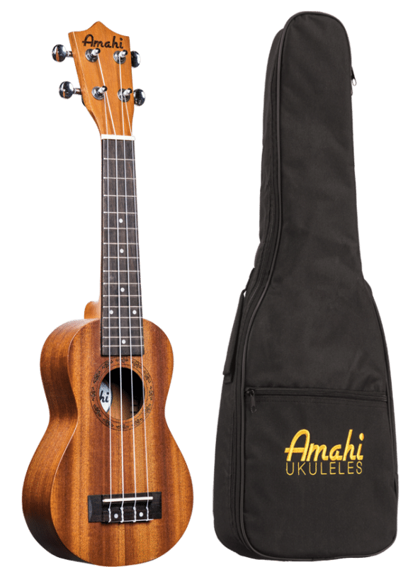 Amahi Mahogany Series Peanut shaped Soprano Ukulele. Equipped with Aquila Italian Strings.