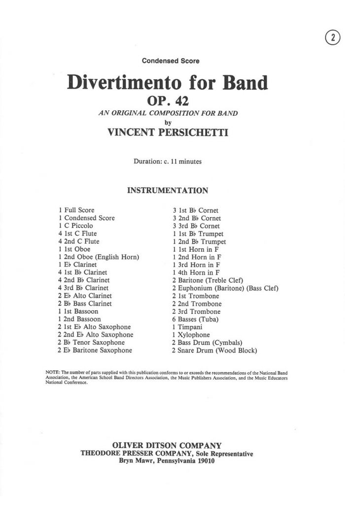 Divertimento for Band, Op. 42 – Persichetti -WSMA Concert Band – Theo. Presser